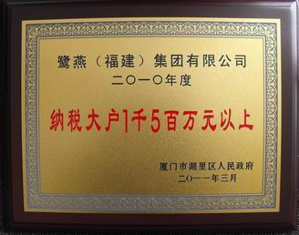 鷺燕(福建)集團(tuán)榮獲“湖里區(qū)2010年度納稅先進(jìn)企業(yè)”稱號(hào)