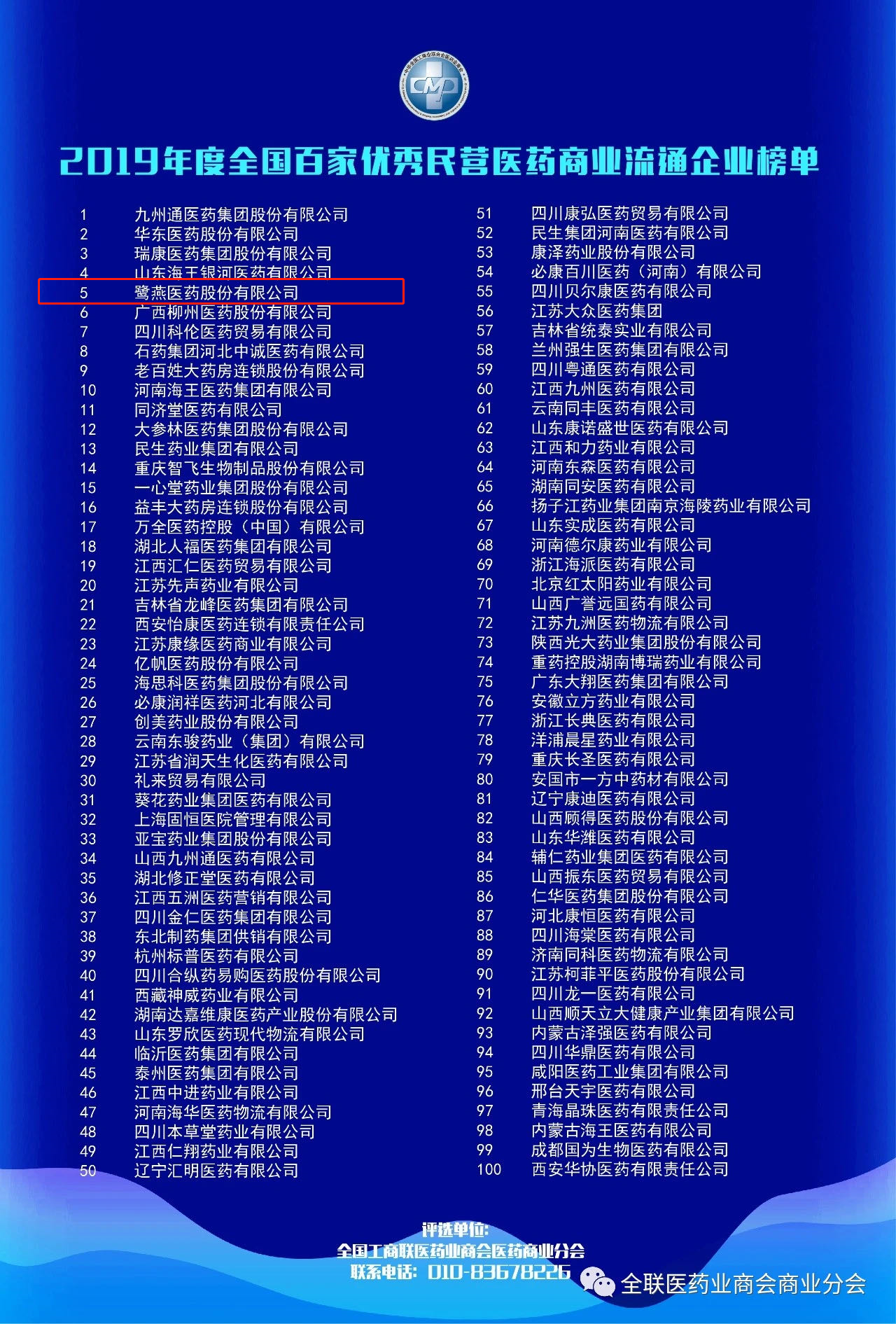 2019年度全國(guó)百家優(yōu)秀民營(yíng)醫(yī)藥商業(yè)流通企業(yè)榜單發(fā)布
