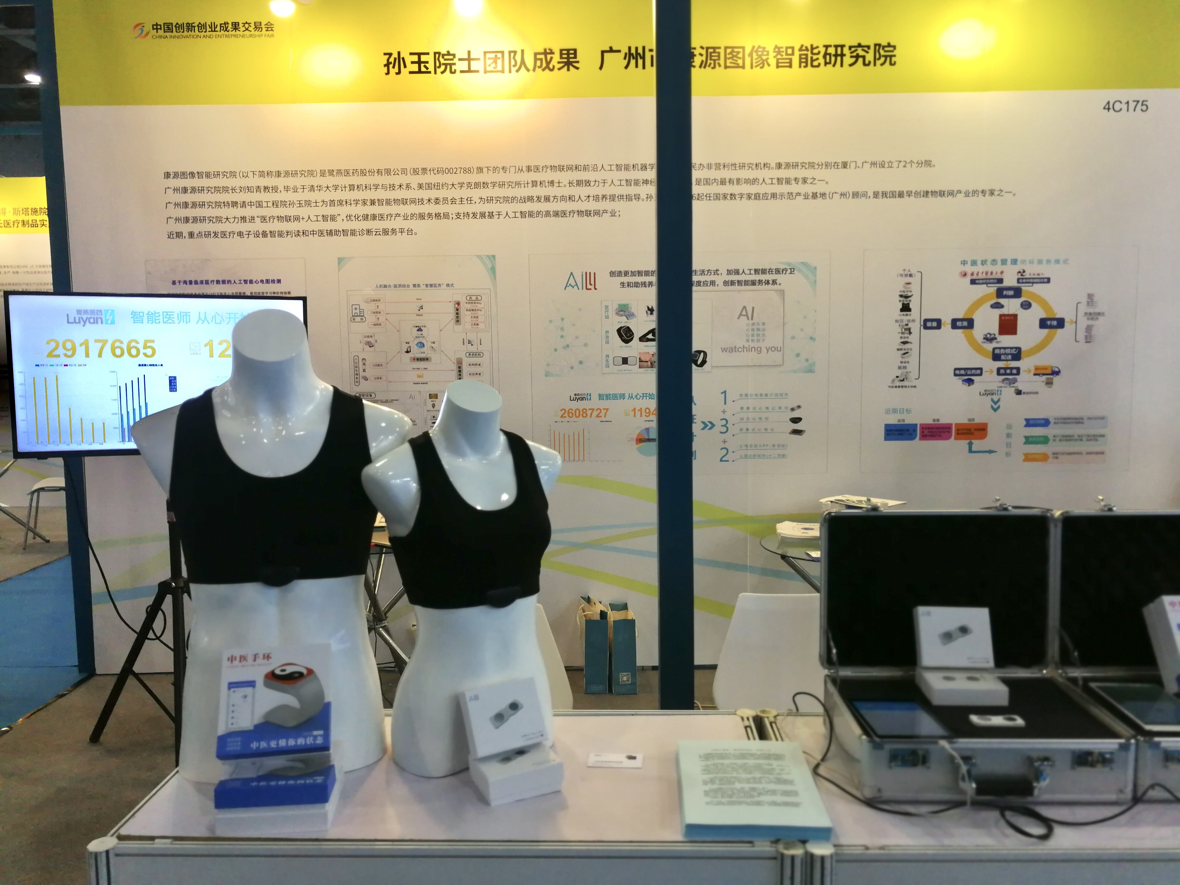 在本屆成果交易會上,康源研究院團隊展出了自主研發(fā)的人工智能便攜式心電系列產(chǎn)品,包括便攜式心電記錄儀、動態(tài)心電儀和中醫(yī)手環(huán)等,現(xiàn)場演示了心電檢測、心電判讀、中醫(yī)狀態(tài)管理閉環(huán)式服務模式。