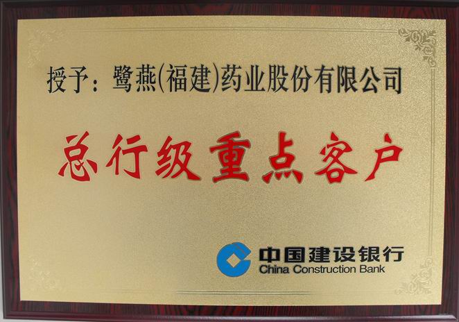 鷺燕(福建)藥業(yè)股份有限公司獲評(píng)中國(guó)建設(shè)銀行“總行級(jí)重點(diǎn)客戶”