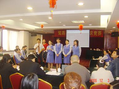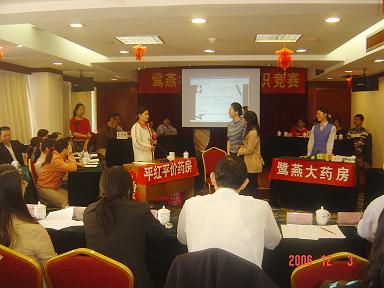 廈門鷺燕大藥房有限公司于2006年12月3日在廈門廬山大酒樓隆重舉行鷺燕杯首屆工會知識競賽,此次工會知識競賽由6個工會小組各自選派4名選手參加,比賽環(huán)節(jié)包括團(tuán)隊介紹、啦啦隊互動、演講比賽、必答題、搶答題、猜詞秀、才藝表演等,形式多樣、內(nèi)容豐富。比賽現(xiàn)場還邀請了一些供應(yīng)商的代表作為嘉賓評委,為比賽進(jìn)行現(xiàn)場點評及頒獎。